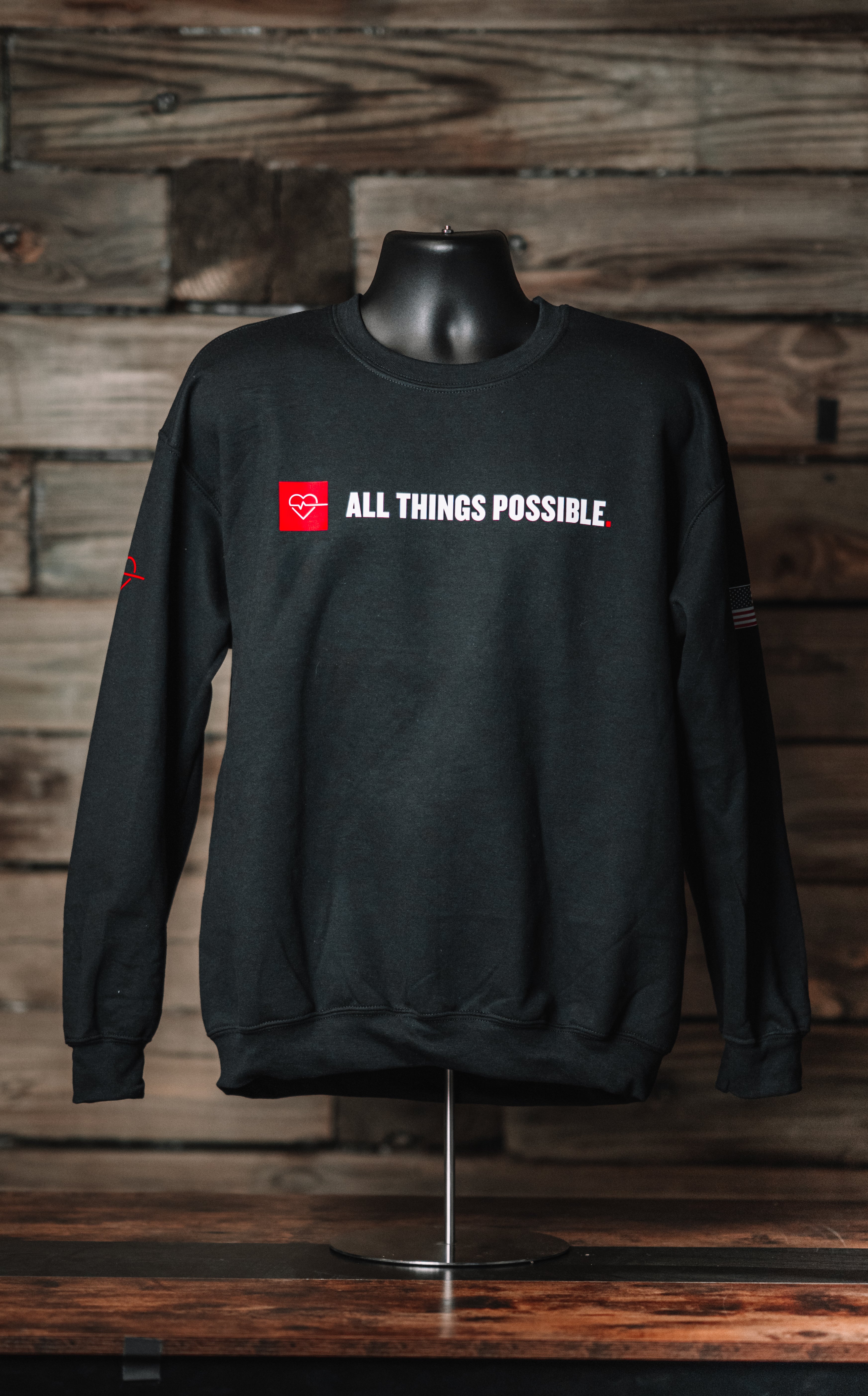 Wear your motivation! This ultra-comfortable black crewneck sweatshirt isn't just clothing, it's a statement. Featuring the bold "ALL THINGS POSSIBLE" mantra on the front, accompanied by a heart graphic, it's a daily reminder of limitless potential. Turn heads with the powerful message on the back: "SETTING CAPTIVES FREE SPIRITUALLY, EMOTIONALLY & PHYSICALLY." Made for those who believe in impact and inspiration. Perfect for casual wear, making a statement, or gifting to someone who needs a reminder of their strength.